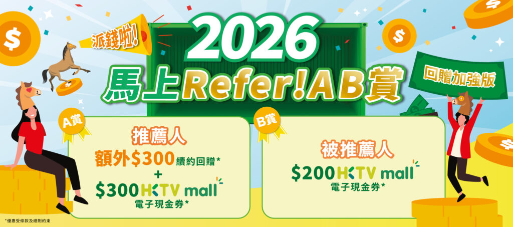 A. 推薦人(任何人, 除城市迷你倉租戶)可獲$300HKTVmall 電子現金券 + 額外$300 續約回贈 (如推薦人是城市迷你倉現有租戶)